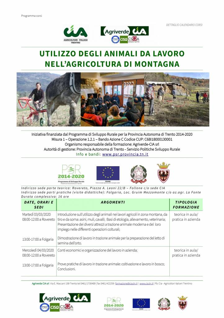 corso Animali da lavoro in agricoltura. Rovereto, 03-04 marzo. Iscrizioni entro il 17 febbraio 2020!