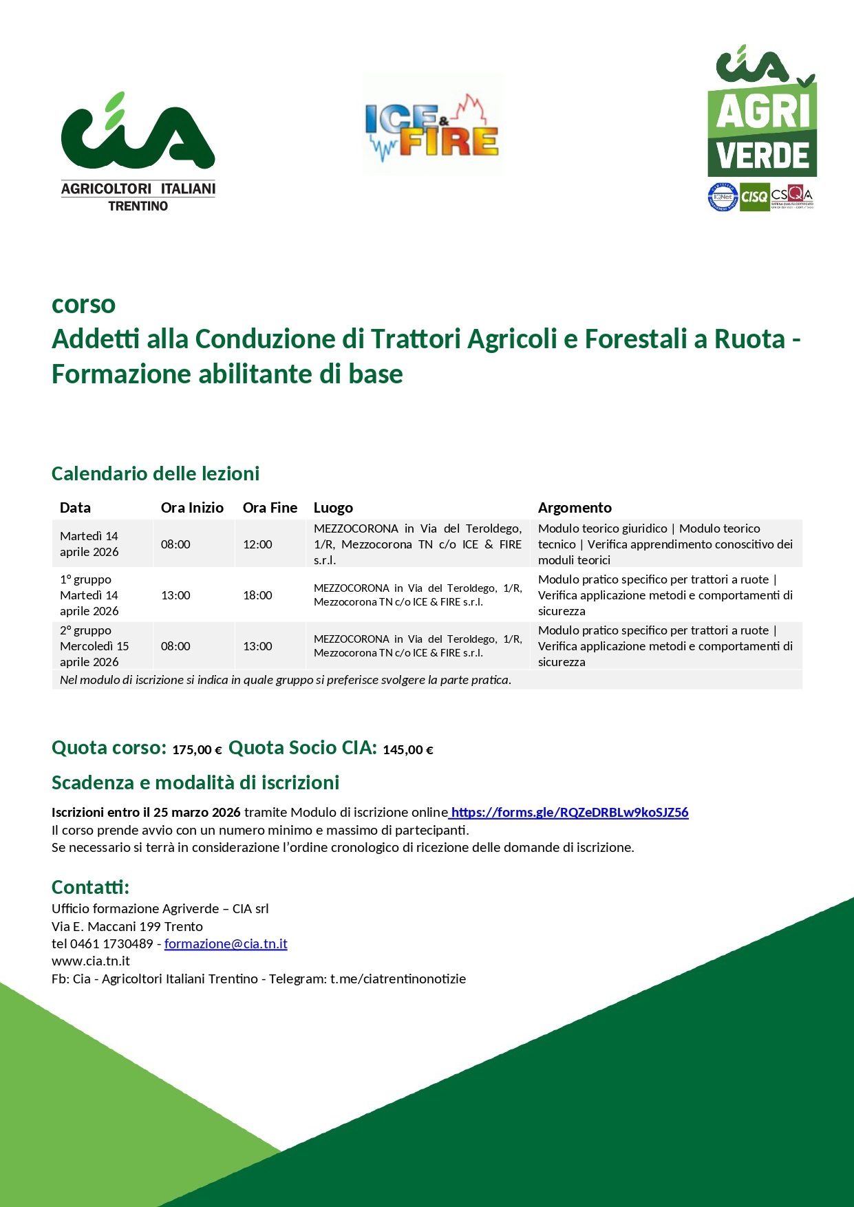 Corso obbligatorio completo per l’abilitazione all’utilizzo dei mezzi agricoli – trattore agricolo e forestale a ruote