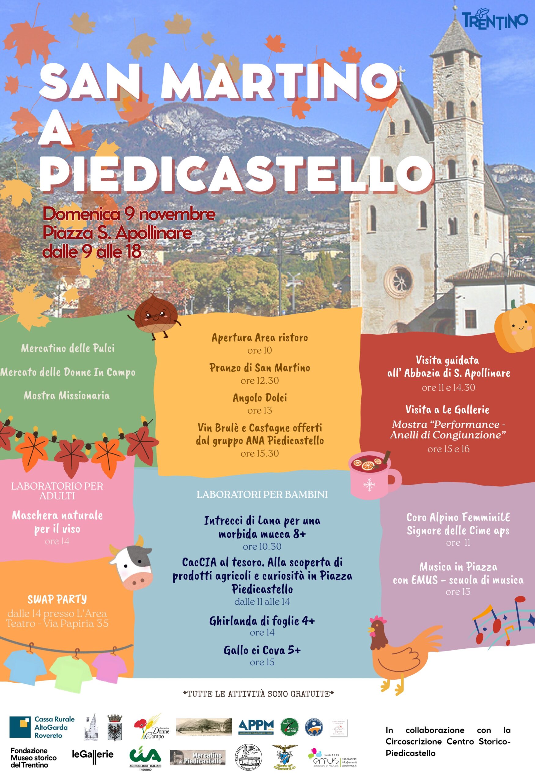 La festa di San Martino, patrono degli agricoltori, vi aspetta anche quest’anno nel borgo storico di Piedicastello per celebrare assieme la fine della raccolta nei campi e l’inizio del periodo di meritato riposo invernale.