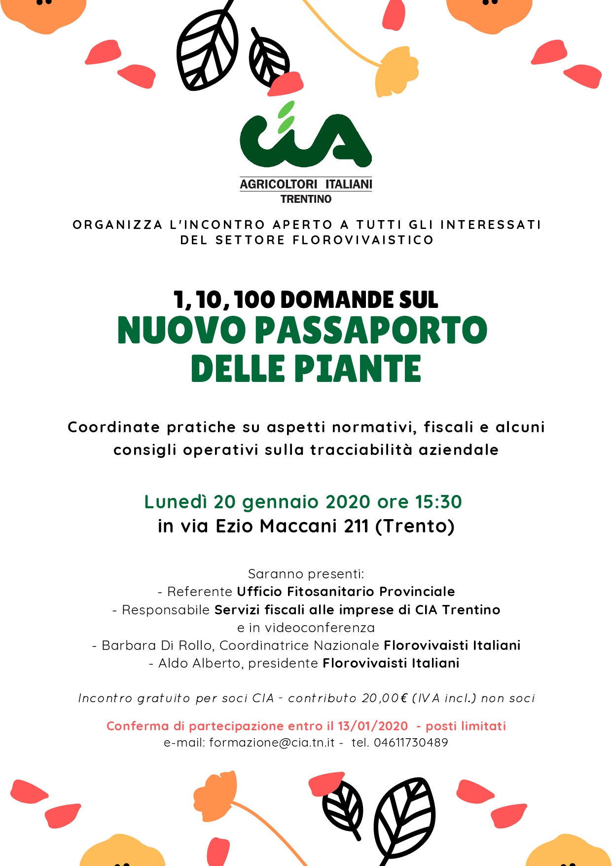 L’incontro è aperto a tutti gli interessati del settore florovivaistico, è gratuito per i soci CIA, ai non soci viene richiesto un contributo di 20,00€ (IVA incl.)