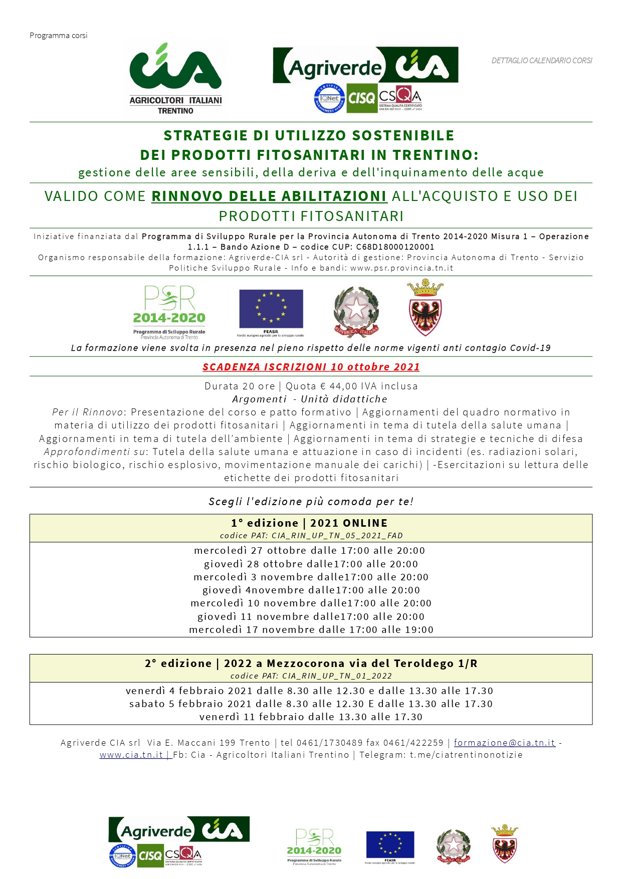 C.I.A. Agricoltori Italiani | Via Maccani 199, TRENTO | tel: 0461 1730440 | e-mail: segreteria@cia.tn.it | C.F. 00422160226 | Agriverde-Cia srl Soc. Unipers. | C.F./P.I.: 01393750227 | Sogg. a Dir. e Coor. di C.I.A. del Trentino | Privacy | Social media Policy | Trasparenza contributi | Design by MarketingDesign