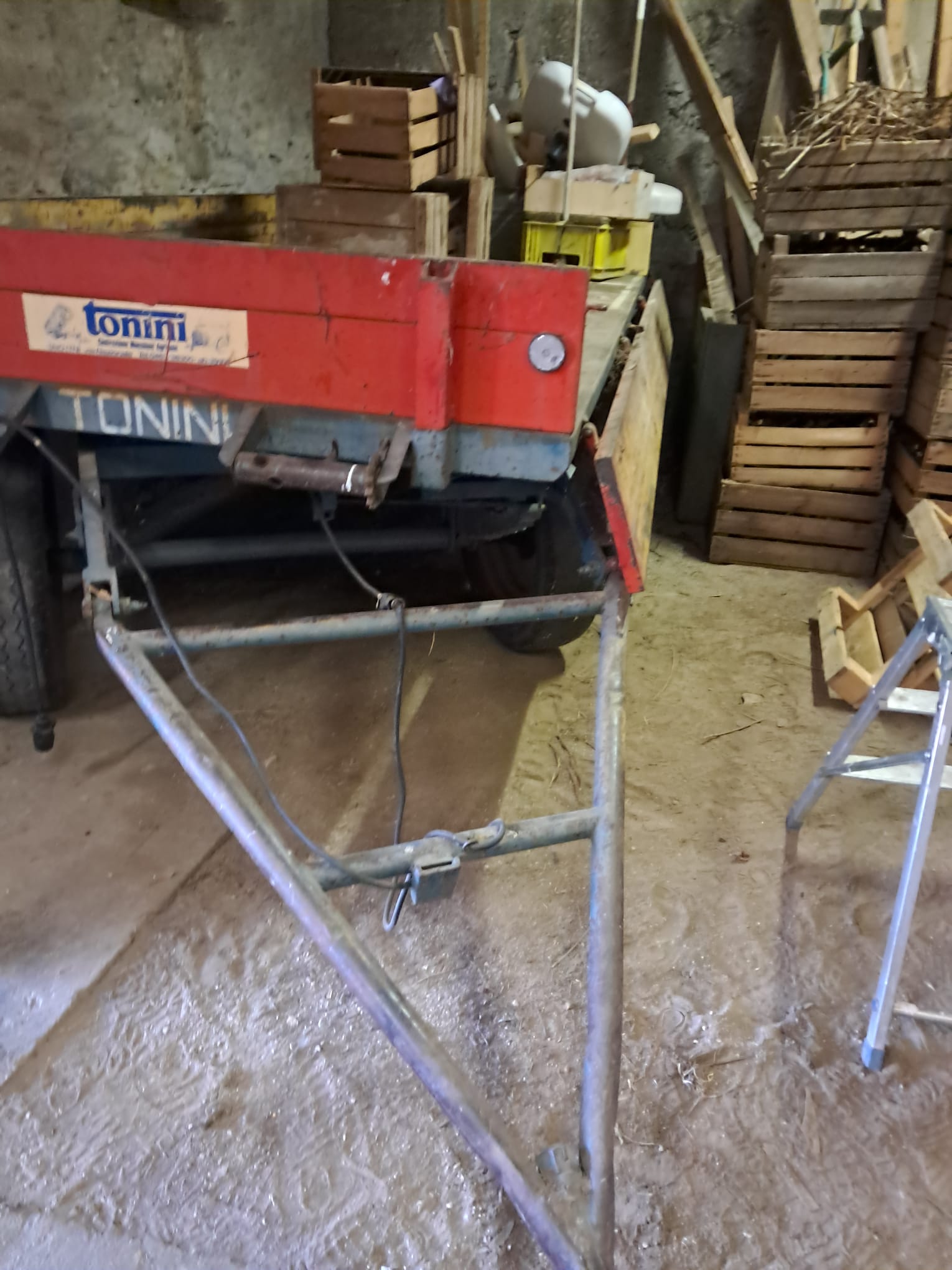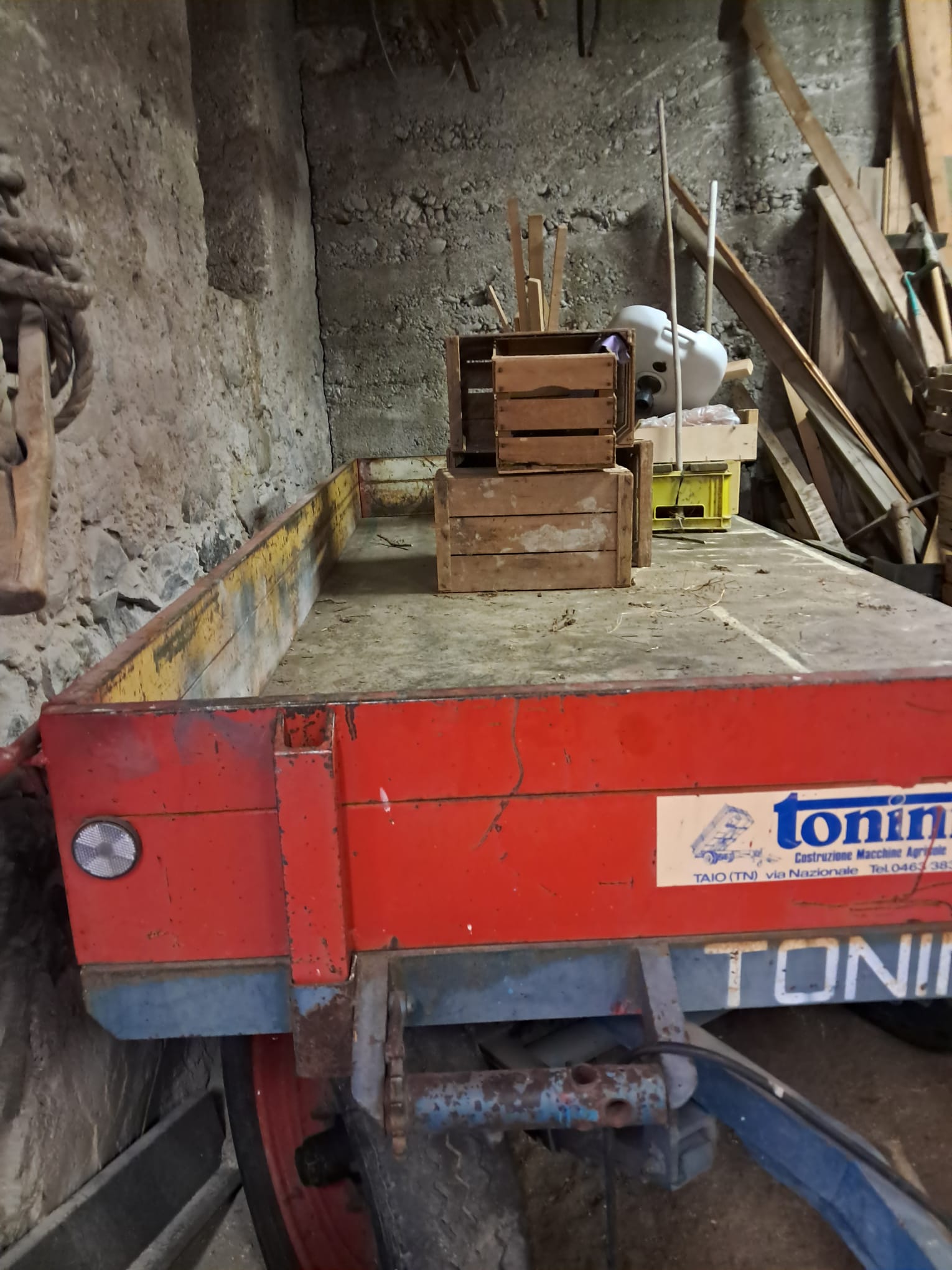 VENDO per inutilizzo rimorchio agricolo portata 31,5 q.li con libretto, pianale in ferro. Incluse due vasche vendemmia in ferro. Visione e ritiro a Mezzolombardo. Misure 345×150. Info 3487336613