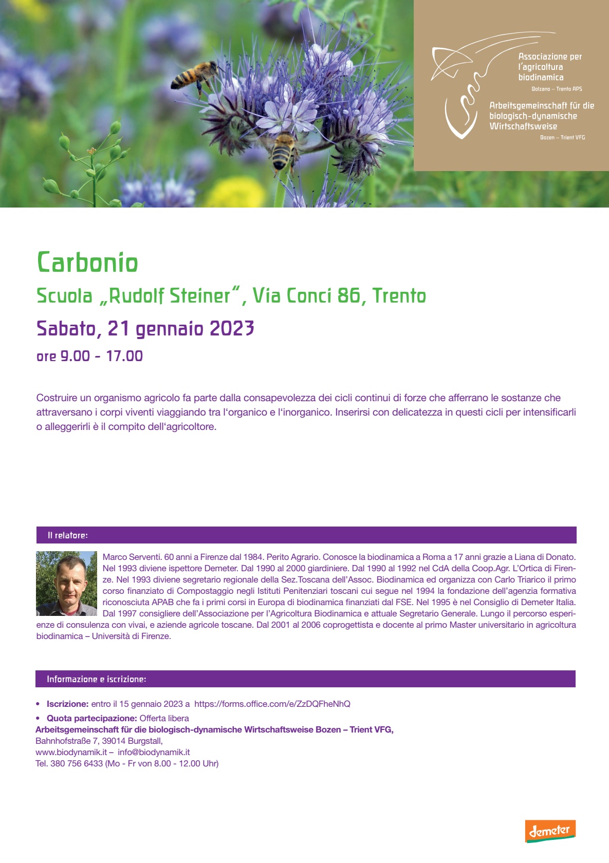 L’Associazione per l’agricoltura biodinamica Bolzano – Trento organizza il seguente seminario: